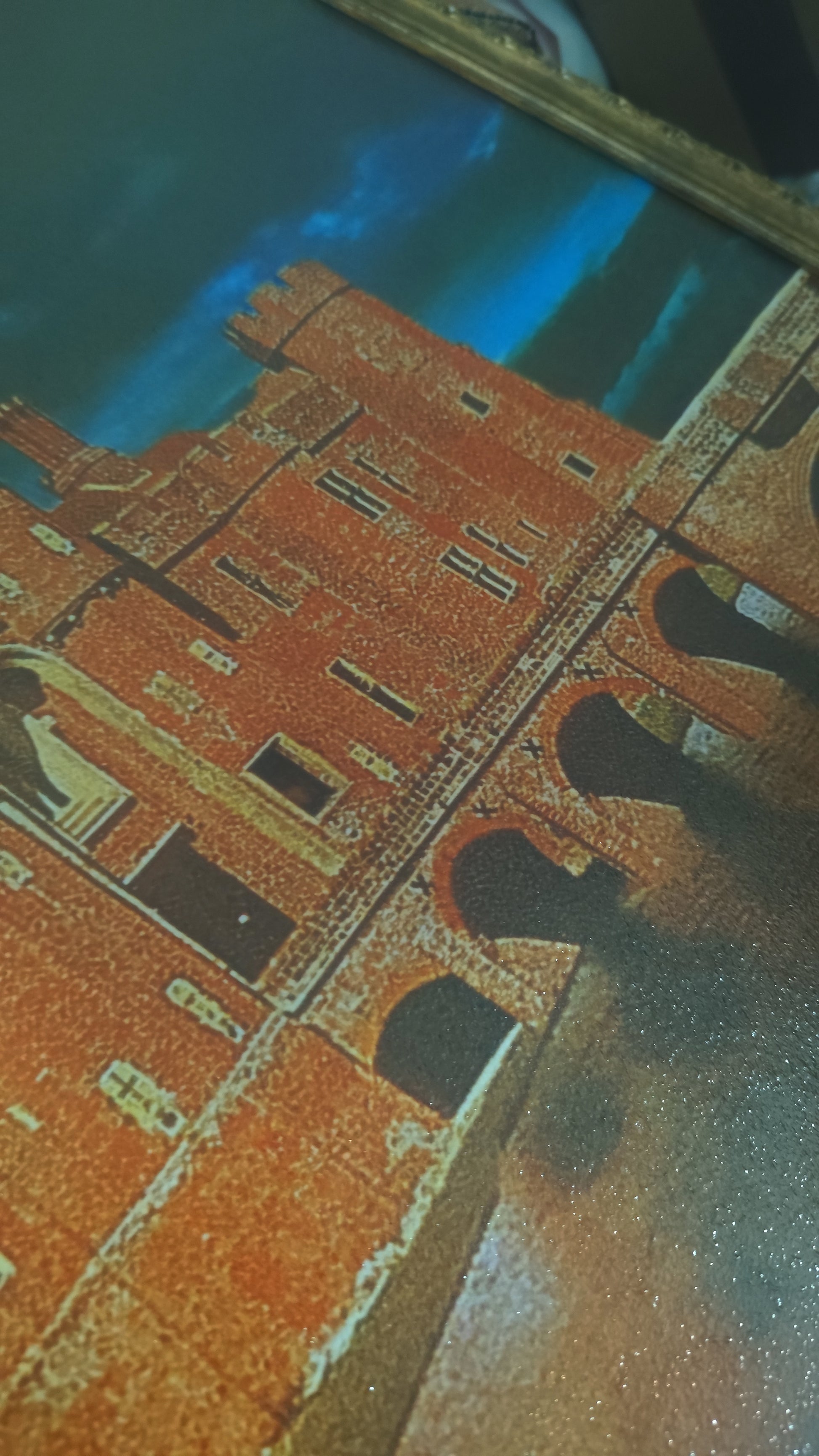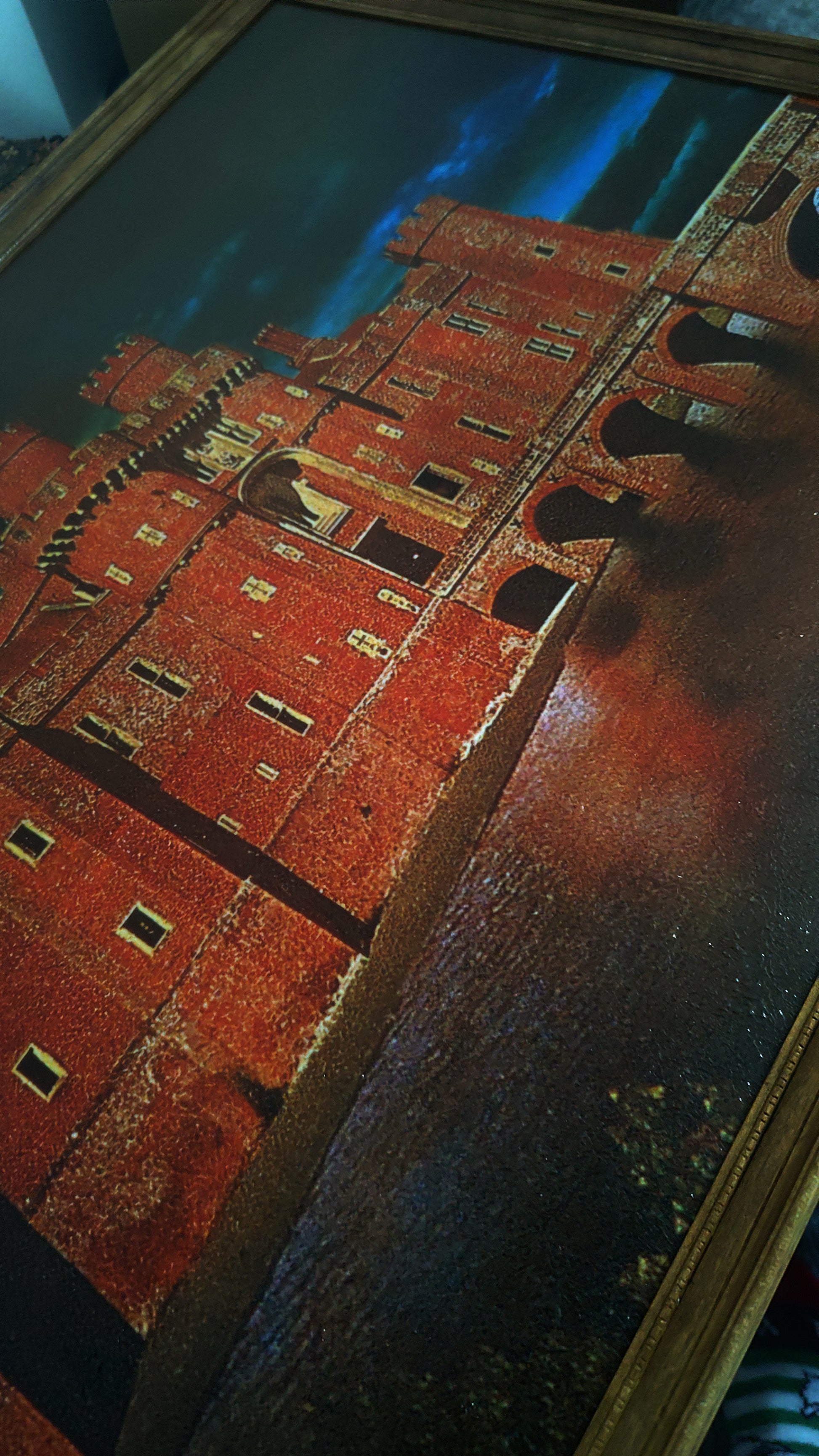 Previously offered in smaller sizes, I am pleased to offer a limited run of the Castle painting in full size! This wonderful print has been mounted inside an aged / antique frame. Complete with flickering window light, the LED bulb can be turned on and off remotely - perfect for fooling guests that someone truly is inside the painting. I have even designed a custom remote control cover complete with Gold triquetra.